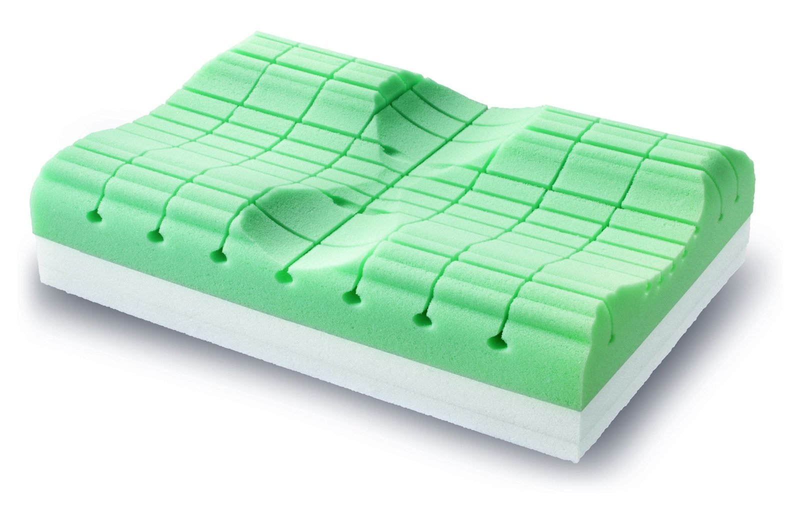 Ортопедично оптимизираната форма и ергономично профилираното ядро намаляват натиска върху шийния отдел на гръбначния стълб, като подпомагат релаксирано и правилно положение на врата и раменете. Специалният разрез и контурната повърхност подобряват циркулацията на въздуха и осигуряват целенасочено облекчаване на напрежението – концепция, доказала ефективността си и в терапевтични приложения.